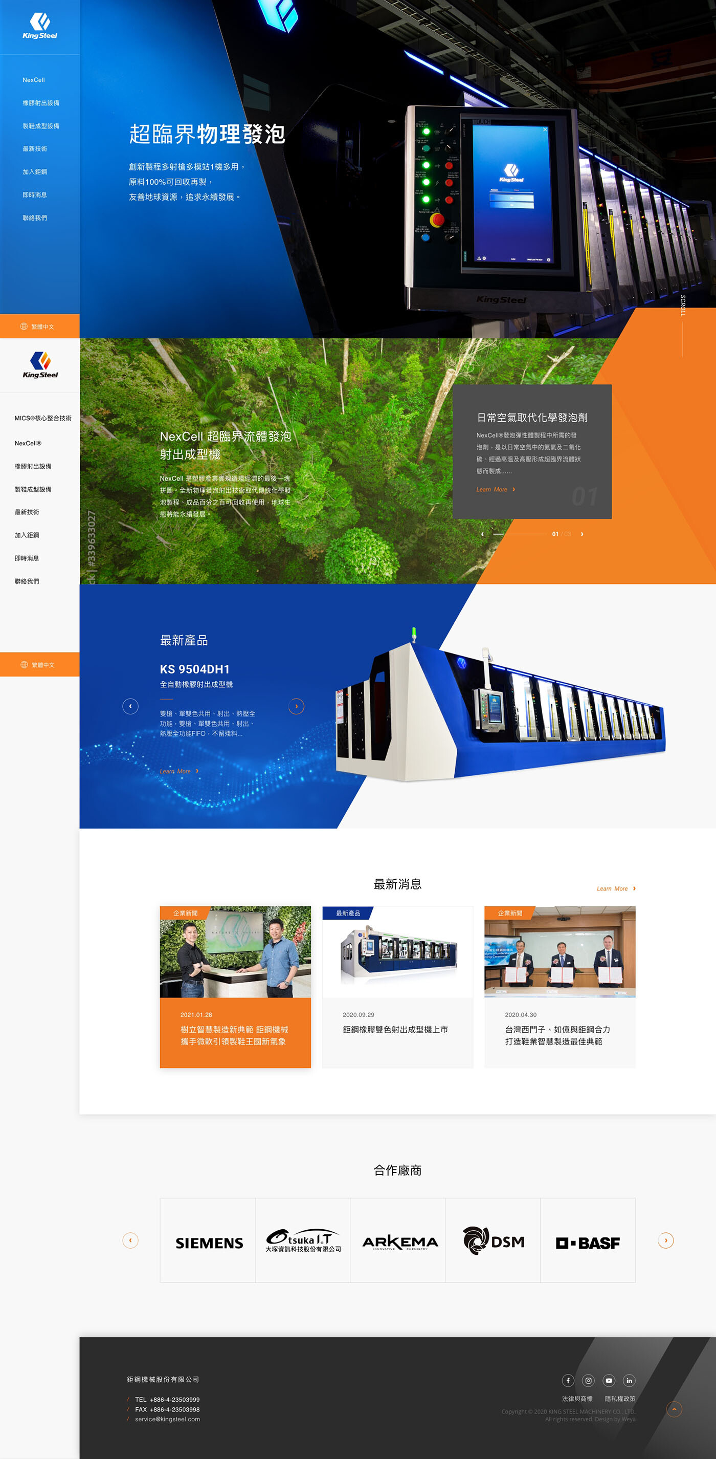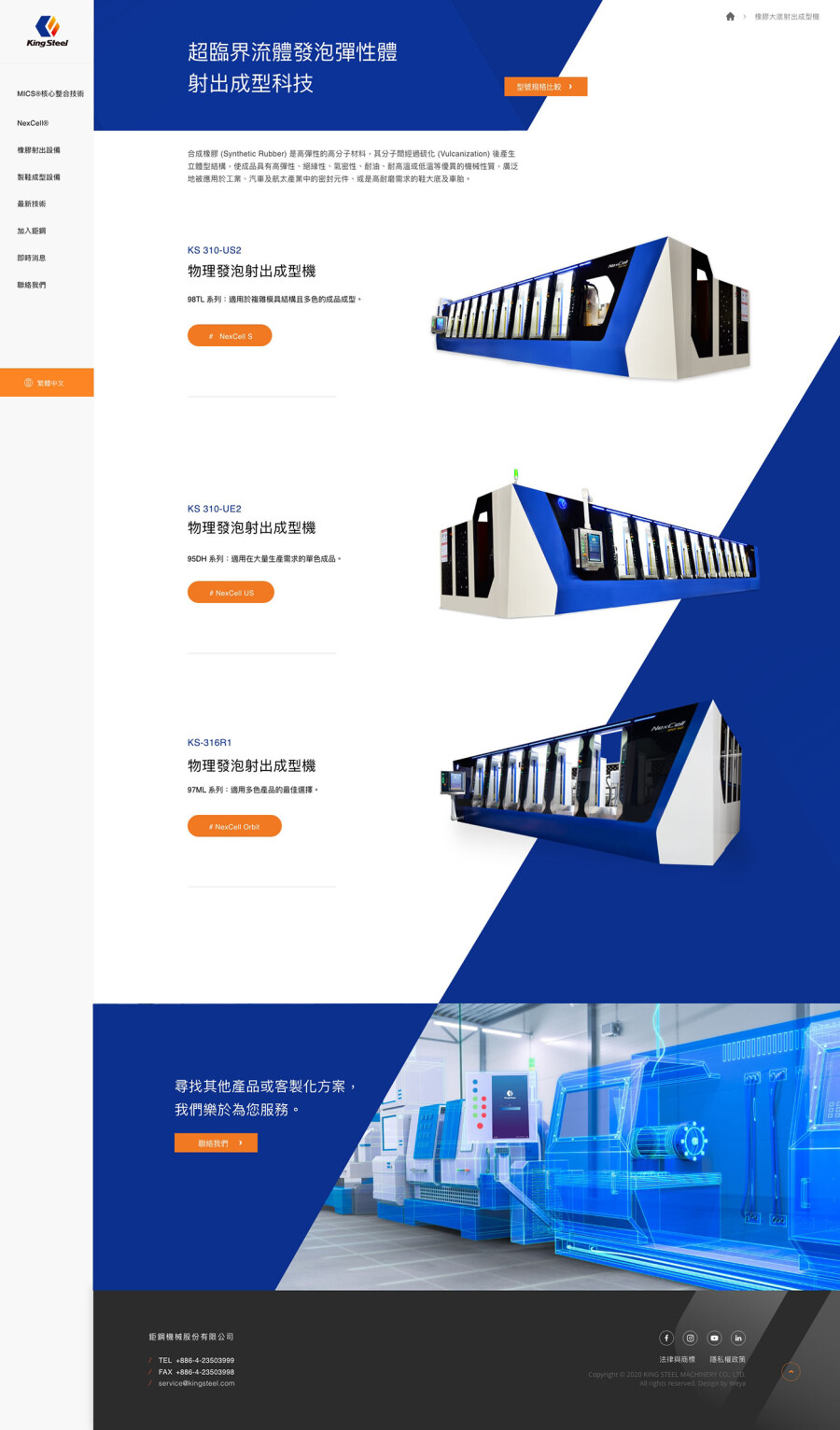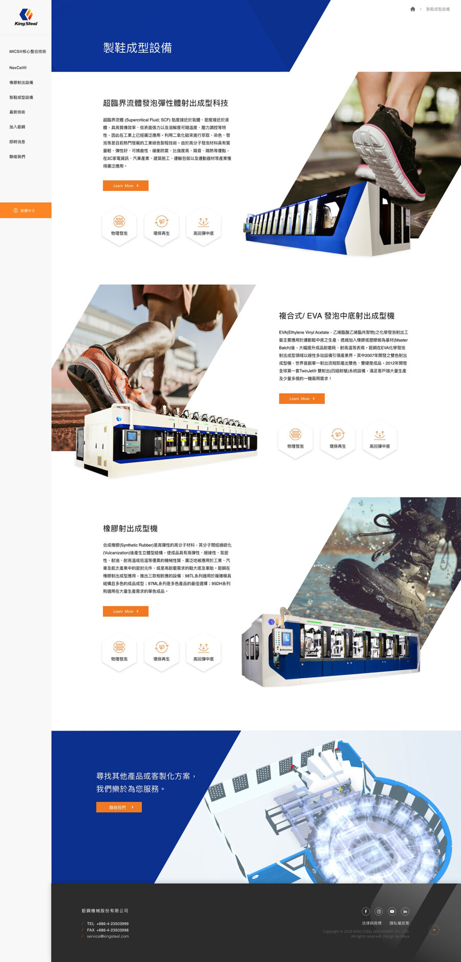網站設計以工業科技感結合直觀排版,展現彈性體設備製造領域的專家。