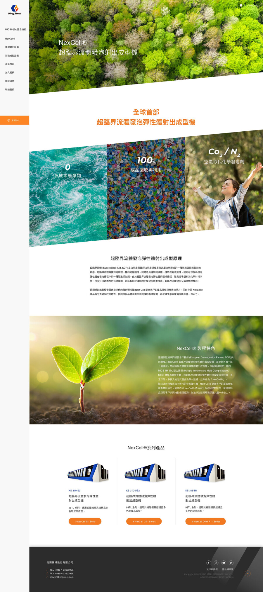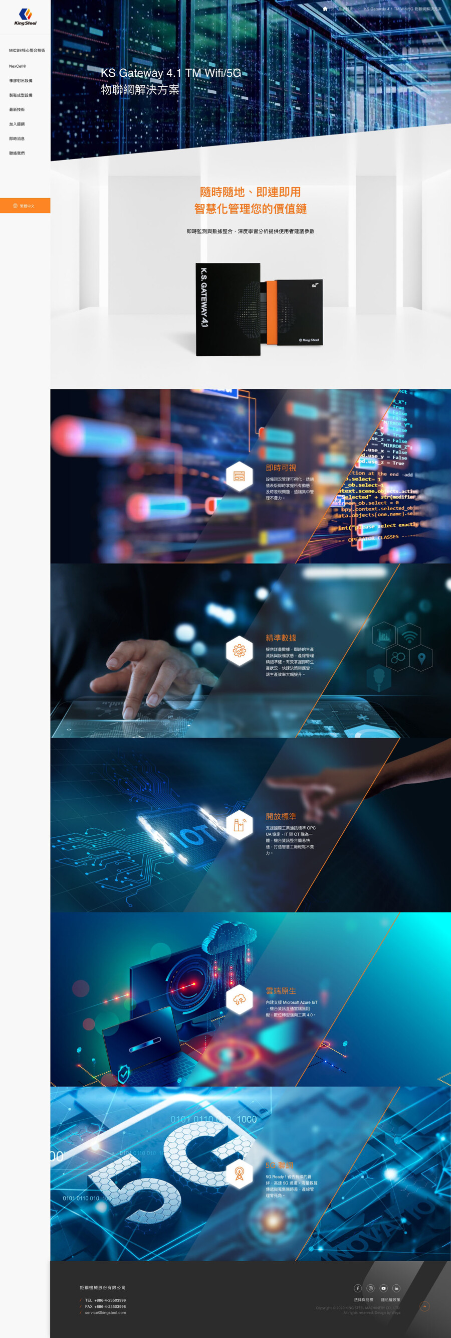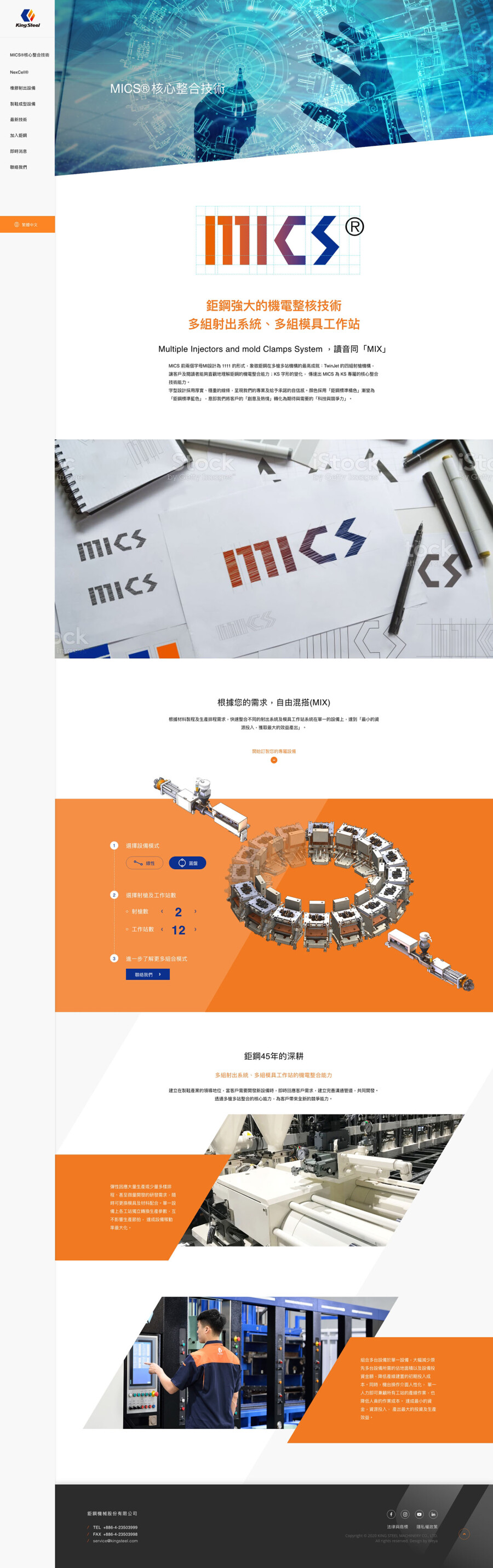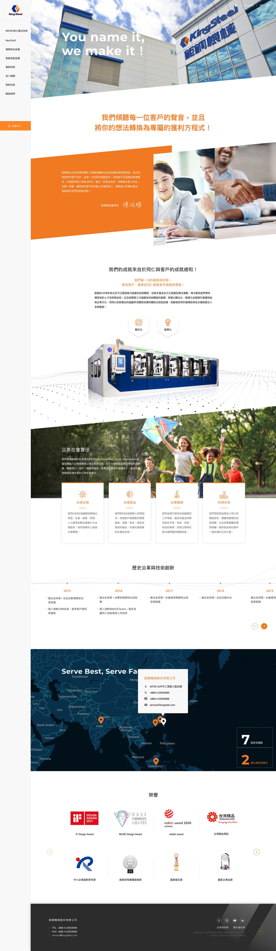 網站設計以工業科技感結合直觀排版,展現彈性體設備製造領域的專家。