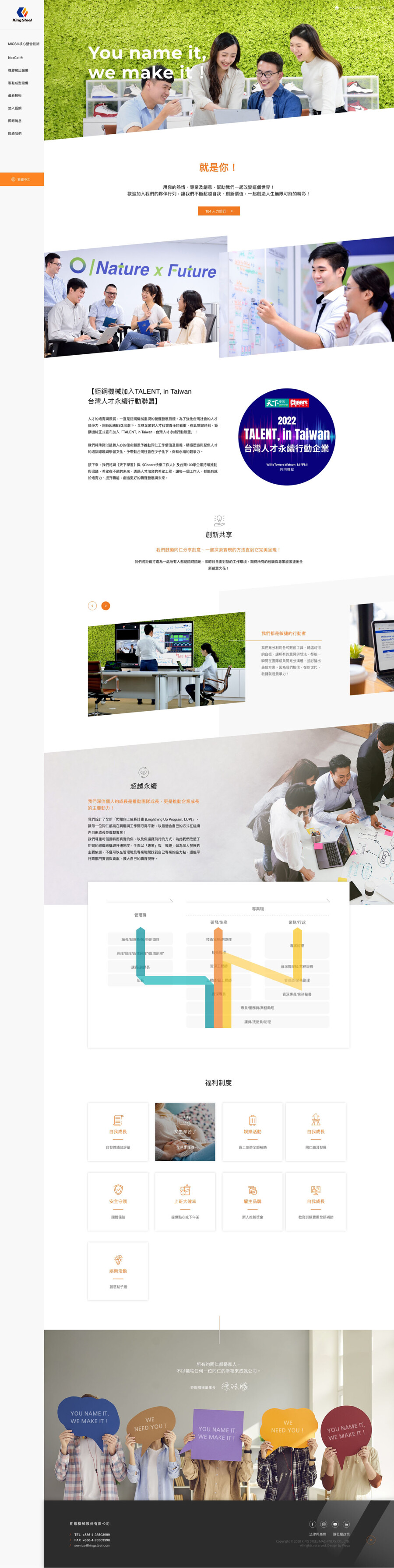 「NATURE × FUTURE」是鉅鋼機械持續前進的方向。 從自然到科技,從製造到永續,以鉅鋼人為軸心,轉動每一個環節,用更好的方式追求生活與產業永續。透過機械製造的角色參與我們的環境,實踐 100% 地球友善製程,推動更全面的永續平衡發展。